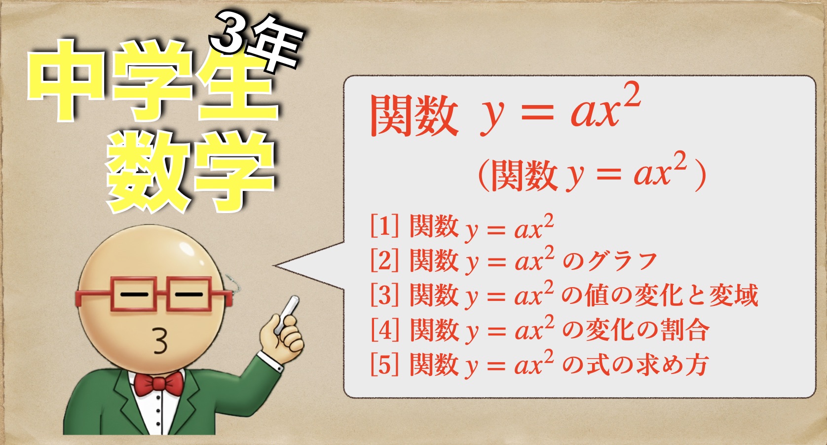 この章では、この「関数 \(y=ax^2\)」について、いろいろと解説しいきますね。