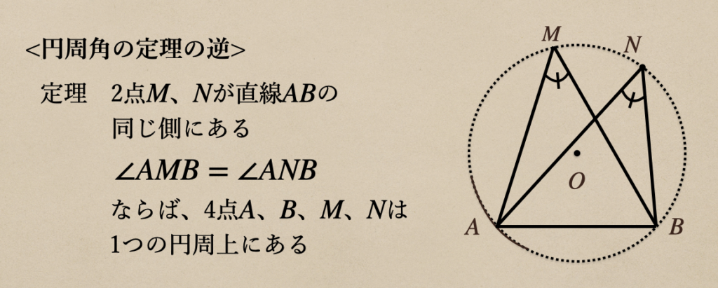 さらにこんなことも言えますよってことがこの円周角の定理の逆の定理とされているんだね。