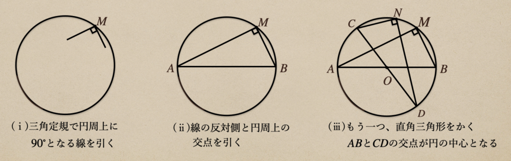 ここまでに、円の性質っていうのを学んできたので、この円の性質を利用して
