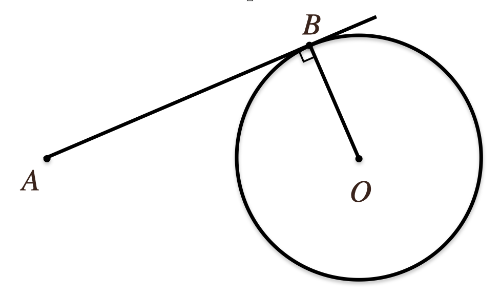 円の接線にも性質があって、点\(A\)から円\(O\)に接線がひかれてその接点を\(B\)と