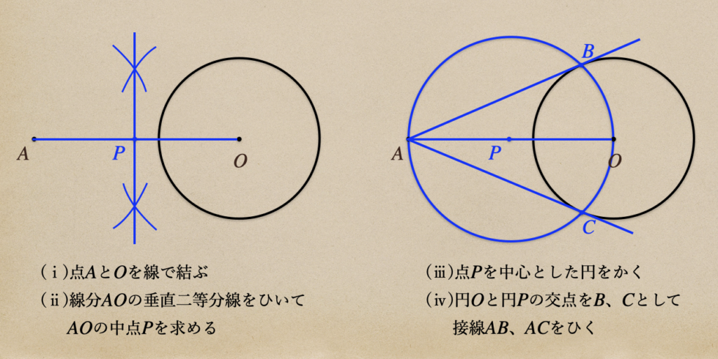 これで接線を作図することができたね。この作図での注意は接線は2つひくことが