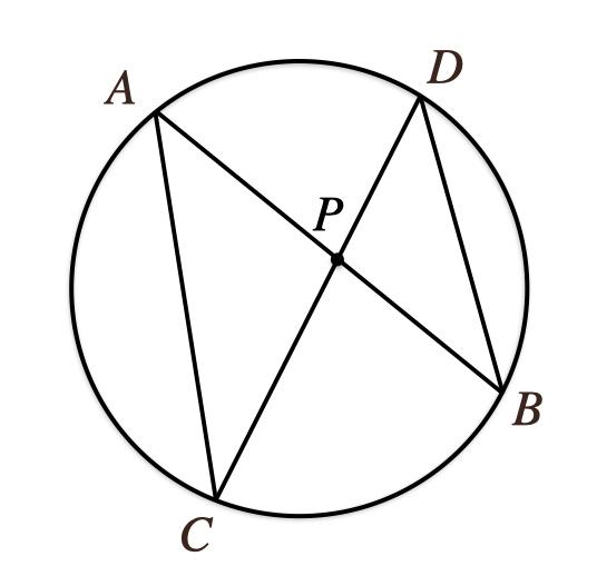 円の内部に点\(P\)をおき、点\(P\)を通る2本の直線をひいて