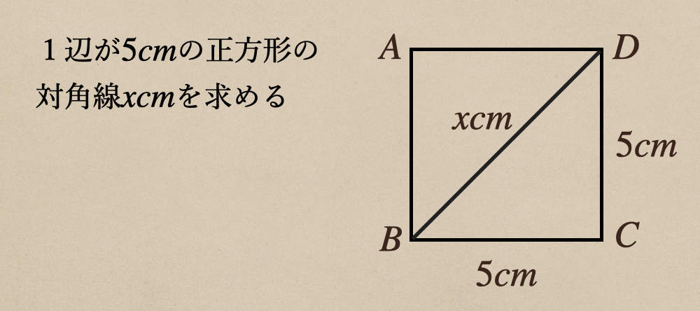 \(BC=CD=5\)で、対角線\(BD\)は\(xcm\)を代入してあげて