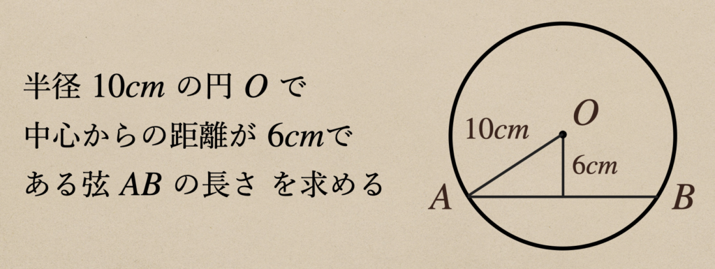 円\(O\)の半径、中心から弦までの距離がわかっていれば、ここから三平方の定理を