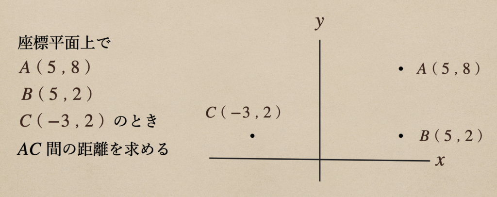三平方の定理を使ってあげて\(AC\)の距離を求めてあげればいいんだね。