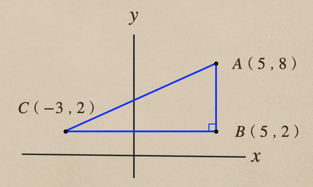 直角三角形の斜辺になっているんだね。そして、斜辺以外の辺の長さは座標から