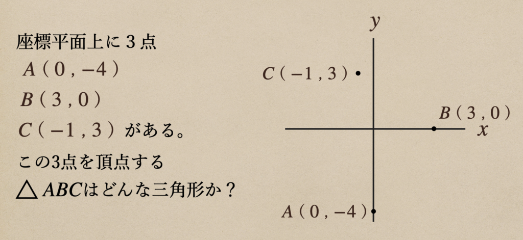 今度は、座標平面上に置かれた点を結んでできた図形がどういったものに