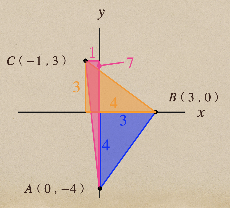こんな風に、座標から三角形の形を考えていくってことだね。