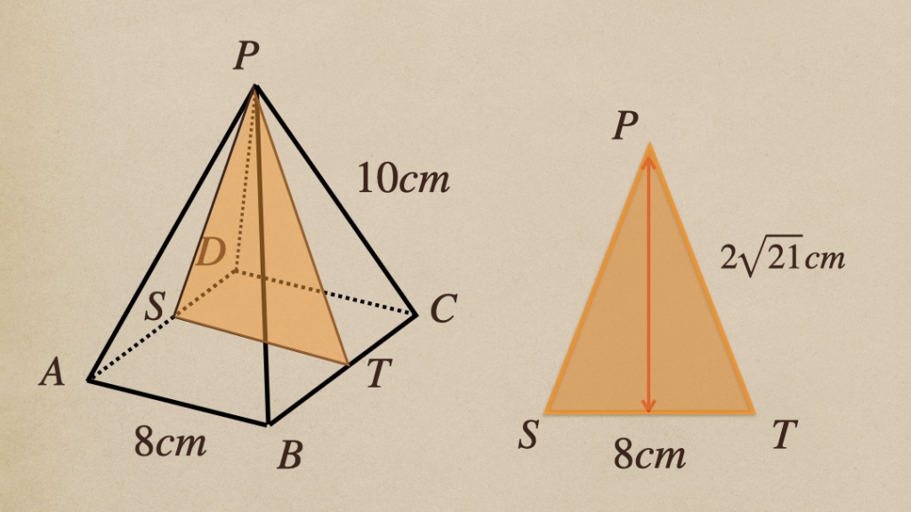見てあげて、この三角形の高さを求めてあげれば、四角すいの高さってことに