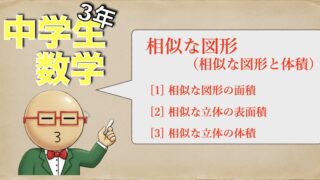 中学3年生で習う数学の相似な図形について解説しています。今回は相似な図形と体積で相似な図形の面積や、体積についてやってます。